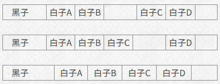 我们同样使用上面学习过的分值定义,所以,最右方的(白子C)的分值是1,(白子B)的分值是2,